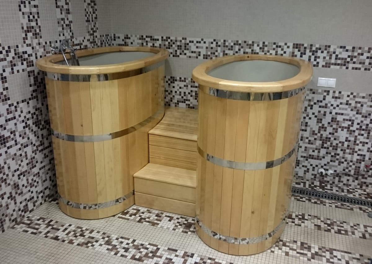 В банном чане всё предусмотрено для комфортного отдыха. Идеально рассчитан наклон верхних граней. Подспинники и сидения сделаны из мягкого материала, которое гораздо удобнее дерева. Обычно в банном чане сидят долго, поэтому дерево является плохим вариантом отделки. Об этом рассказал менеджер Павел. Я сомневалась, но на практике убедился в верности услышанных слов.